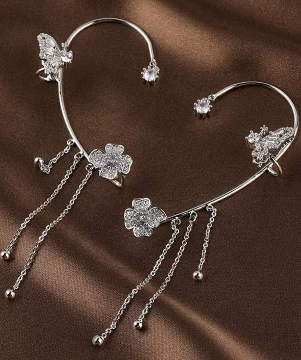 - Package includes: Zircon Flower Butterfly Ear Clip * 1 pair